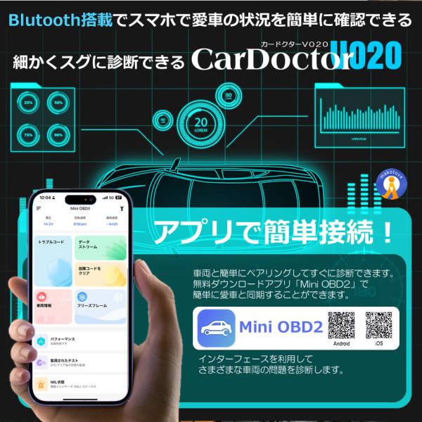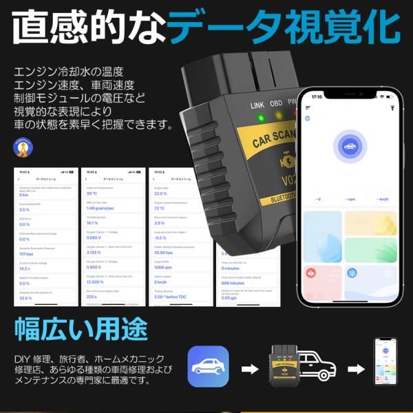 OBD2 故障診断機 スマホ Bluetooth 簡単接続 日本語 読み取り車スキャナー診断スキャナーツール V020