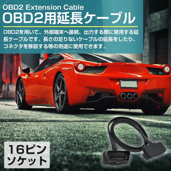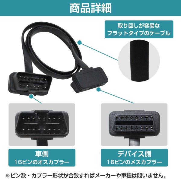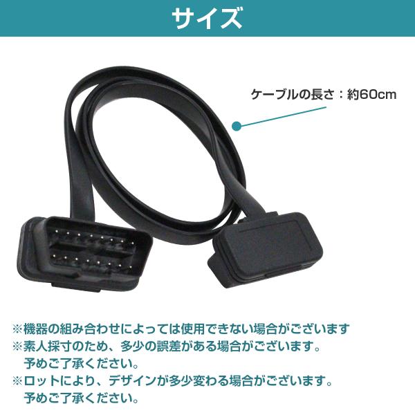 フラット延長ケーブル OBD2 OBDII 16ピン 16pin 延長配線 厚さ2.6ミリ 長さ60cm 汎用 OBD メーター 診断機 故障 スキャナー ツール