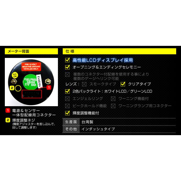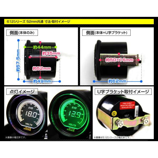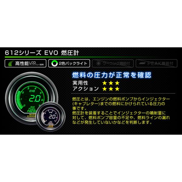 オートゲージ 燃圧計 52Φ デジタルLCDディスプレイ ホワイト/グリーン 車 メーター AUTOGAUGE 追加メーター 日本製モーター 52mm EVO 後付け