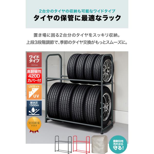 タイヤラック 4本 8本 縦置き 2段 タイヤスタンド UVカット/高耐候420Dカバー ワイド 100cm 選べる キャスター付も タイヤ収納 1年保証 送料無料