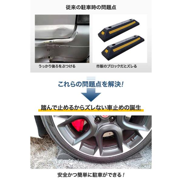 SPEEVAL パーキングマット ズレない 置くだけ 取付簡単 超強力テープ 車止め タイヤストッパー カーストッパー 輪止め 駐車 タイヤ止め 車止め 1個