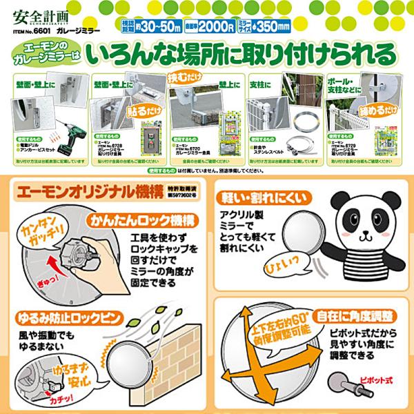 6601 エーモン amon 安全計画 ガレージミラー 丸型 曲面率2000R