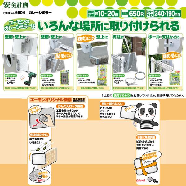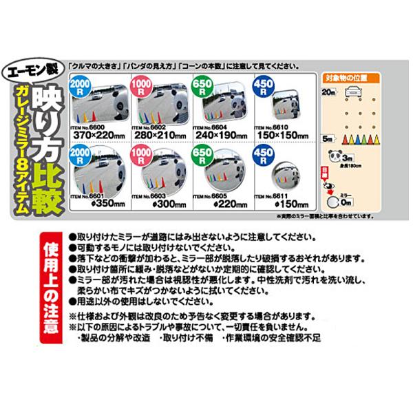 6604 エーモン amon 安全計画 ガレージミラー 角型 曲面率650R