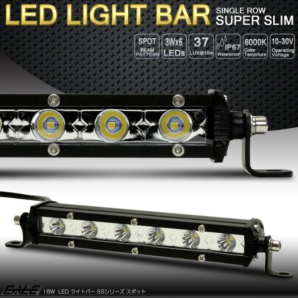 LED ライトバー ワークライト 作業灯 18W 12V 24V 8インチ 30度スポット 薄型 軽量 防水 IP67 P-473