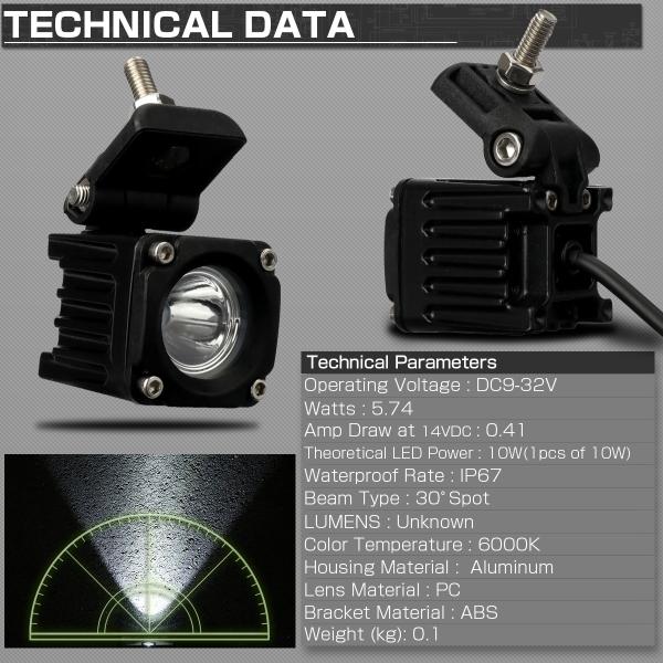 LED 作業灯 10W ライトポッド 12V 24V 防水 IP67 ミニ 小型 軽量 スポットライト ワークライト P-536