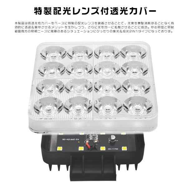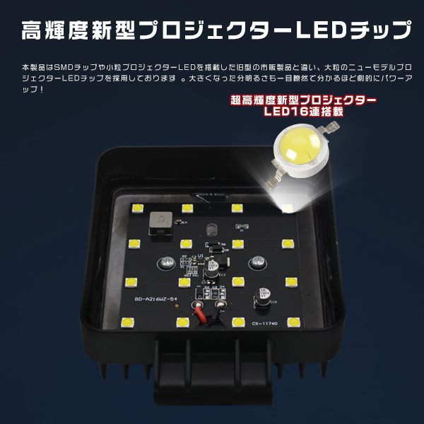 10個 led作業灯 ワークライト 56W 高輝度16連 7800LM 集光&投光2IN1型 8Vから60V 車 トラック 路肩灯 船舶灯 デッキライト IP67防水 2年保証