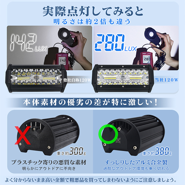 ワークライト 作業灯 LED 13500LM 2個 120W 防水 IP67 40枚チップ 集光&投光両立 車載 船舶 前照灯 集魚灯 看板灯 8-60V PL保険 2年保証