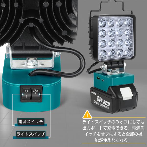 マキタ 18V ライト 充電式ワークライト LED フラッドライト コードレス作業灯 投光器 48W 3LM IP65防水 手提げ付 USB Type-C充電 一年保証(バッテリー別売り)