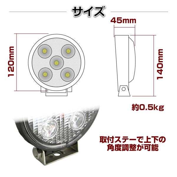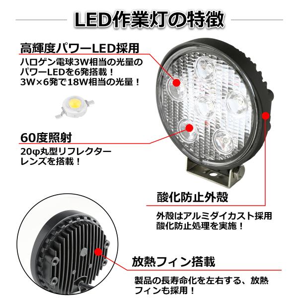 【2個セット】 LED ワークライト 作業灯 ライト 丸型 18W 12V 24V 兼用 防水 バイク 車 トラック フォグランプ バックランプ 補助灯 カスタム パーツ PZ329-2SET