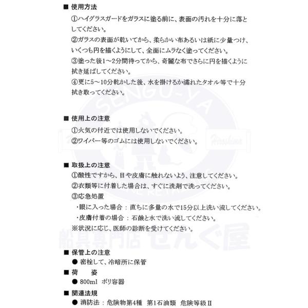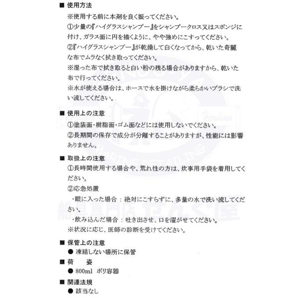 ハイグラスシャンプー・ハイグラスガード セット 各800mL 船舶用ガラスの汚れ取り、ガラスウロコ取り 【日本油化工業】