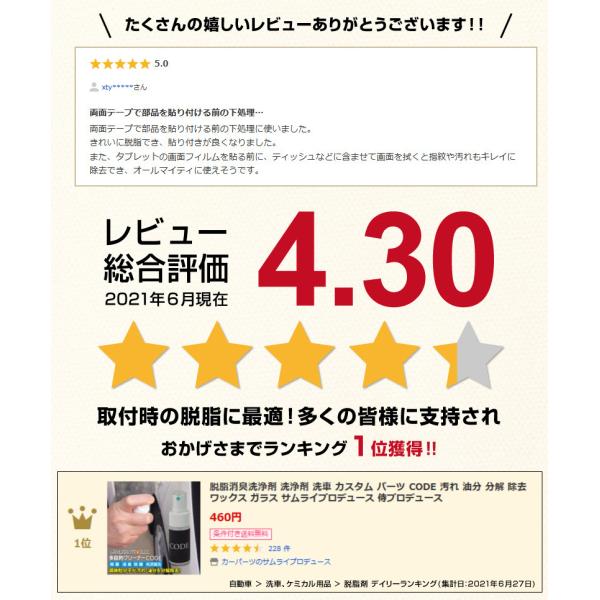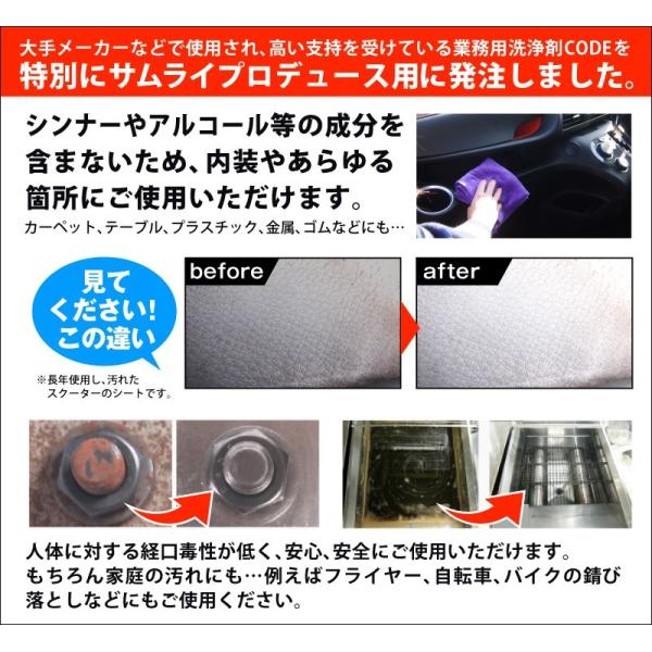 脱脂消臭洗浄剤 洗浄剤 洗車 CODE 汚れ 油分 分解 除去 ワックス ガラス サムライプロデュース