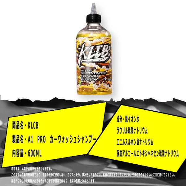 1000倍希釈 カーシャンプー 濃縮 中性 KLCB A1 PRO 600ml プロ仕様 泡洗車 フォームガン コーティング車 対応 洗車用品 メンテナンス 車用洗剤 コスパ