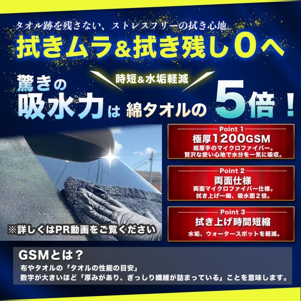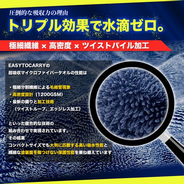 洗車タオル 超吸水 マイクロファイバー 極厚1200GSM 40cm×40cm【EASYTOCARRY】 ドライタオル 車 バイク コーティング車対応 クロス