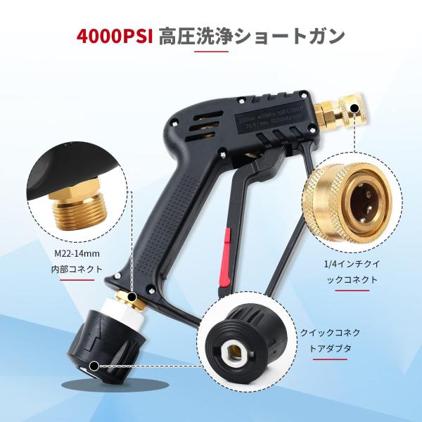 ケルヒャーショートガン フォームガン 高圧洗浄機ガン4000PSI ケルヒャー 真鍮製 5in1ノズル 洗車 庭掃除 ペット洗浄 ケルヒャーノズル