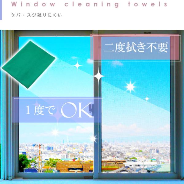 二度拭き不要タオルガラスクリーン緑L ケバスジ残らないガラス用タオル 洗車窓ふきに最適なガラスタオル 1発でふけるタオル ro005