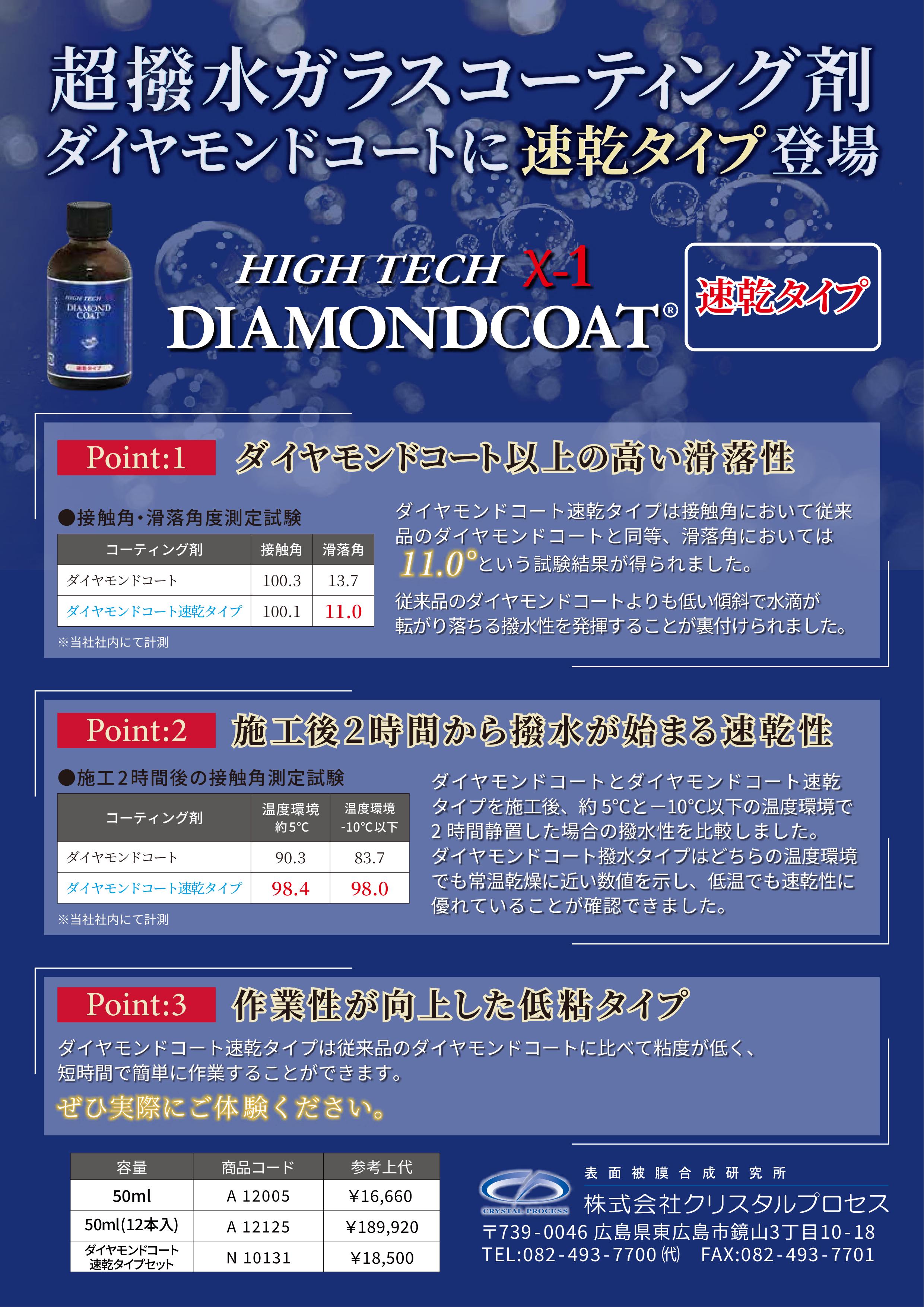 クリスタルプロセス ハイテクX1 ダイヤモンドコート速乾タイプ 超撥水 ガラスコーティング 50ml 速乾
