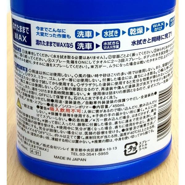 濡れたままでWAX リンレイ 全塗装色対応 450ml