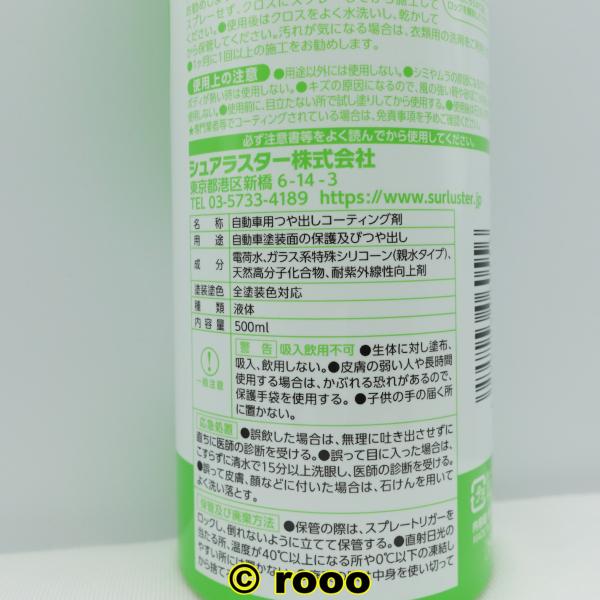 シュアラスター ゼロウォーター 親水 _ 500ml カーコーティング
