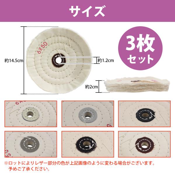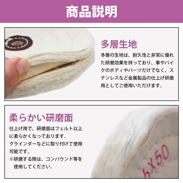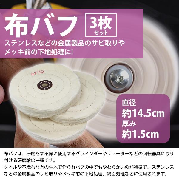 【3枚セット】仕上げ用 研磨 150mm 布バフ 両頭 コットン 布 バフ ホイール 金属研磨 緻密加工 艶出し ディスク グラインダー