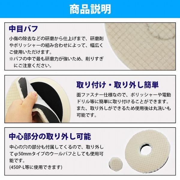 【中目/Φ180】ウールバフ 外径 180mm ポリッシャー 研磨 バフ 掛け 洗車キズ 水垢 艶出し 塗装 仕上げ 目消し 磨き 車