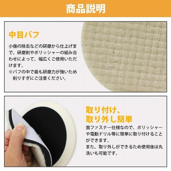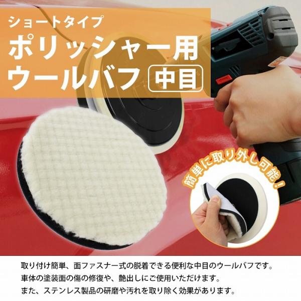 【中目/Φ125】ウールバフ 外径 125mm ポリッシャー 研磨 バフ 掛け 洗車キズ 水垢 艶出し 塗装 仕上げ 目消し 磨き 車