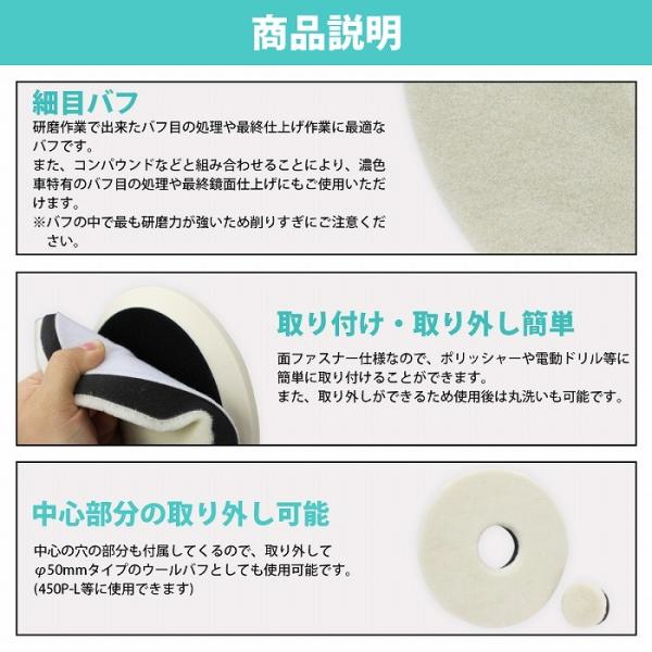 【細目/Φ180】ウールバフ 外径 180mm ポリッシャー 研磨 バフ 掛け 洗車キズ 水垢 艶出し 塗装 仕上げ 目消し 磨き 車
