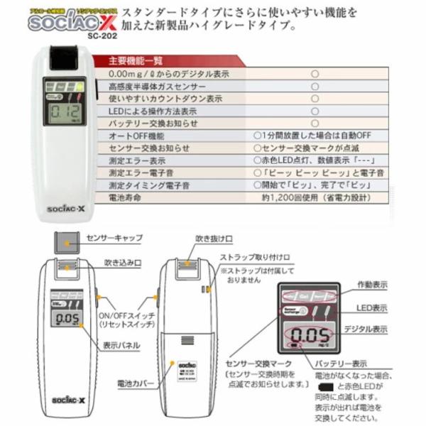 ソシアックX SC-202 アルコール検知器 パーソナルタイプ アルコールチェッカー 中央自動車工業 SC202