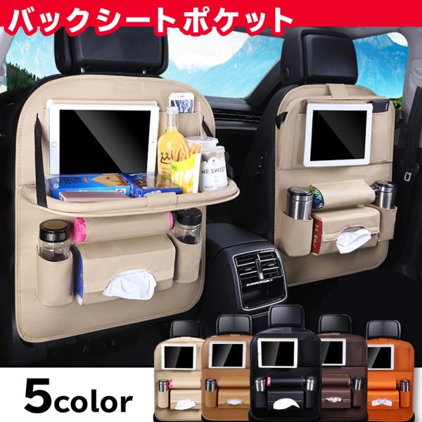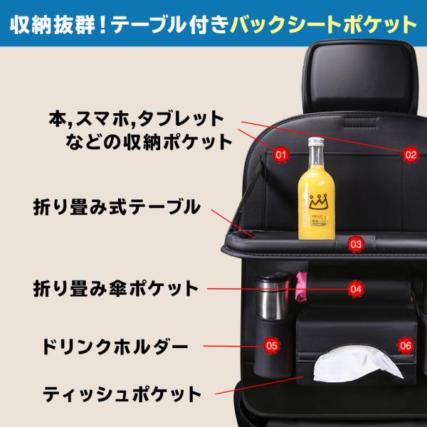 車 バックシートポケット テーブル ドリンクホルダー 後部座席用 収納 カー用品 内装 タブレット キックガード レザー調