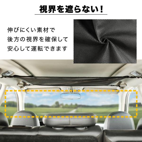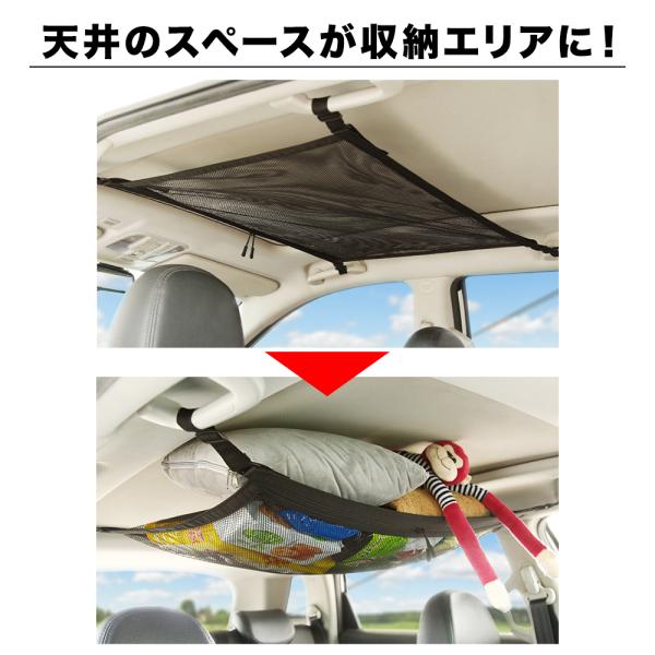 車用 天井 収納 ネット ファスナー付 ミニバン SUV 車カーゴネット ラゲッジネットメッシュ&ジッパー 簡単設置 荷物 ルーフネット スペースネット 車中泊