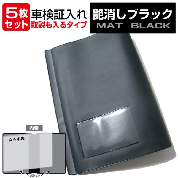車検証入れ|取説が入るタイプ・5枚セット(生地:艶消し黒)|車検証ケース