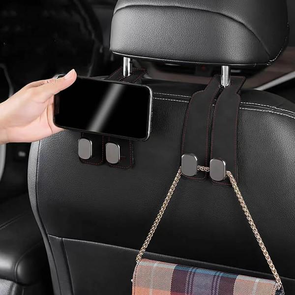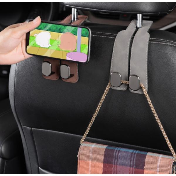 レザーヘッドレストフック 2個セット 高級感 スマホホルダー 車用シートフック ダブル 簡単取付 荷物かけ 耐荷重20kg 省スペース 帽子 バッグ 買い物袋 LGG02S