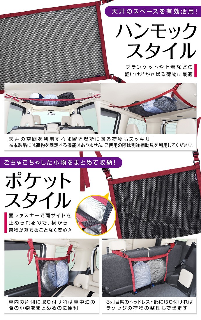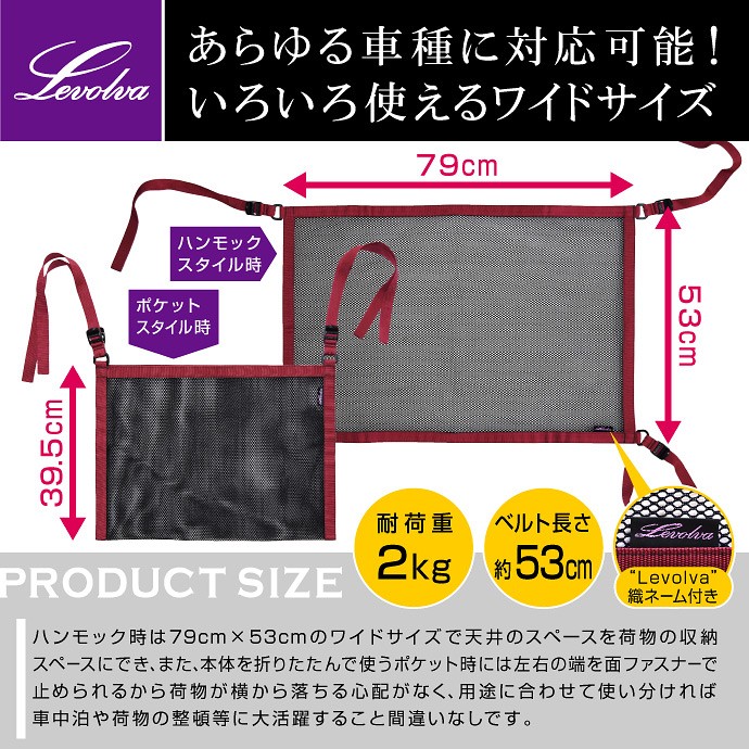 汎用ヘッドスペースネット ミニバン向け|ルーフネット マルチネット オーバーヘッドネット ラゲッジネット 車用収納グッズ 車中泊グッズ|Levolva 車中泊用品