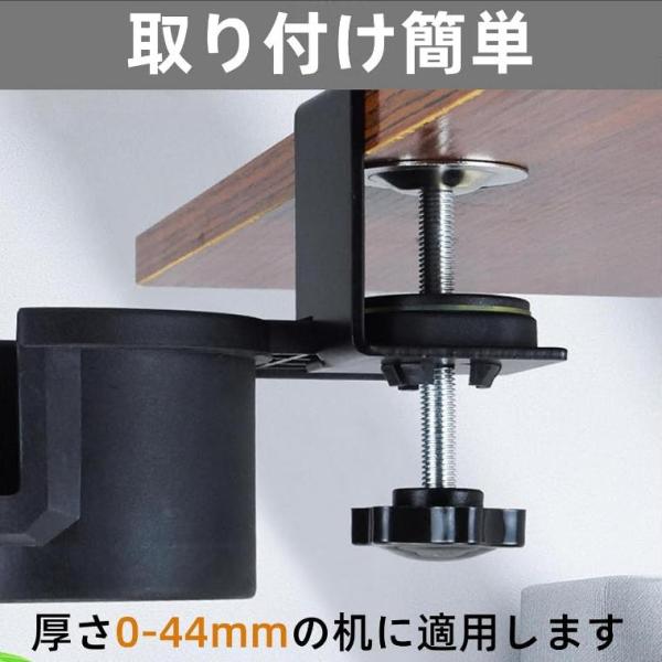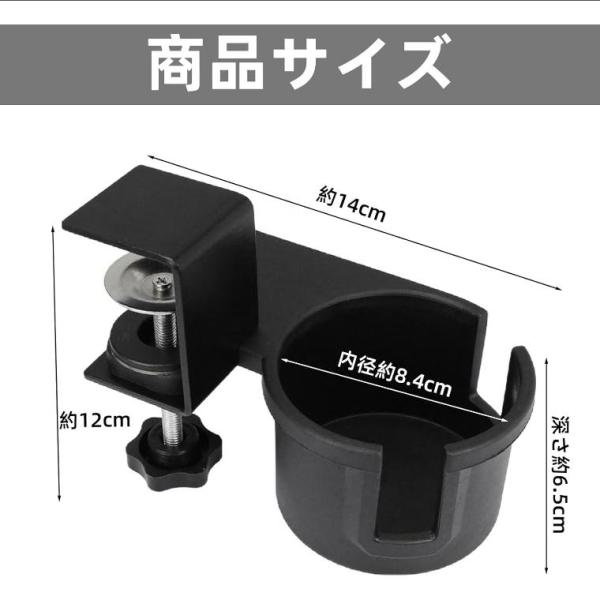 ドリンクホルダー デスクサイドホルダー デスク カップホルダー ボトルホルダー デスクサイド用 テーブル 机 180度回転 内径8.4 cm クランプ式 ブラック