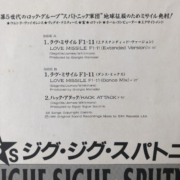傷なし美盤 ジグ・ジグ・スパトニック Sigue Sigue Spuytik 1986年 12インチEPレコード Love Missile F1-11/ Hack Attack 国内盤 帯付