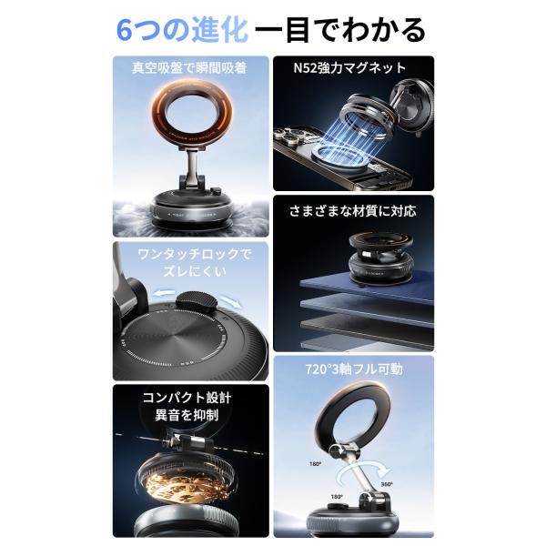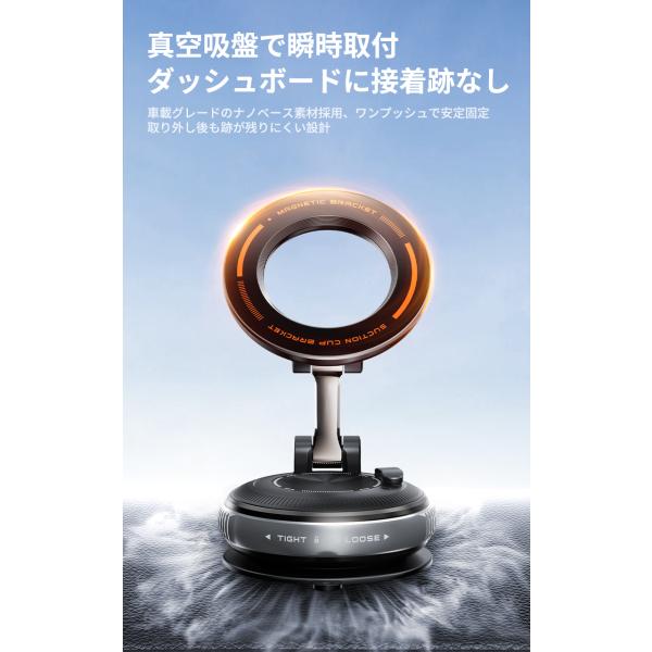 【ボーナスストア+10%】スマホホルダー 車 ナノゲル吸着×真空吸盤 magsafe対応 360度回転 マグネット 片手操作 iOS Android全機種対応 スマホスタンド