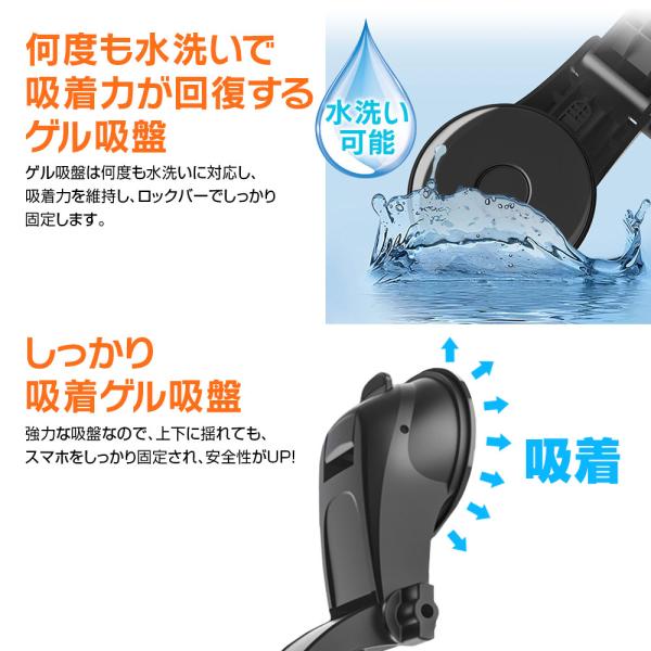車載ホルダー iPhone スマホホルダー スタンド 吸盤 360度 ロングアーム つる首タイプ 車載 スマホ iPhone16 iPhone15