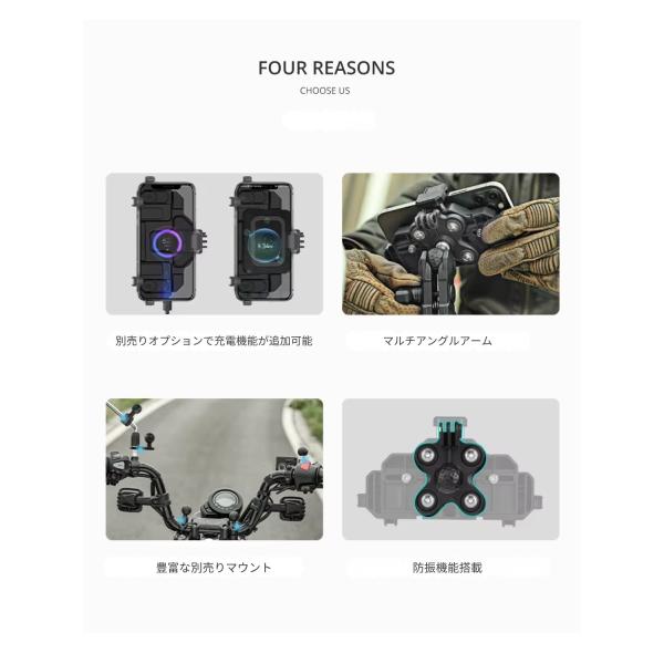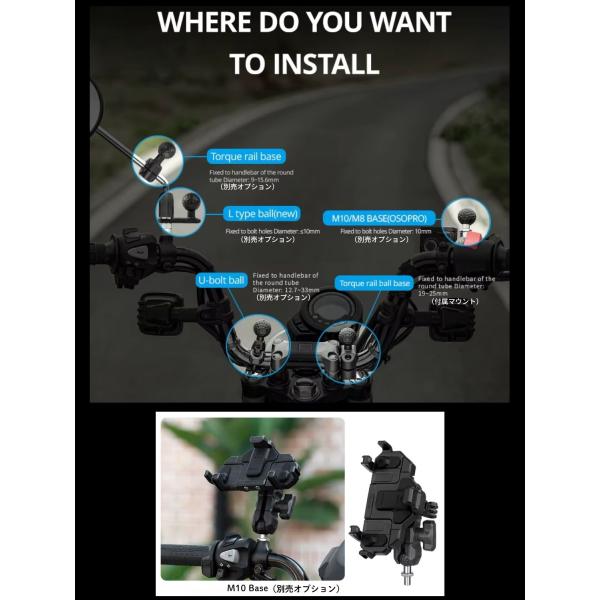 【在庫処分セール】OSOPRO 五匹 バイク用スマホホルダー クラブマウント 防振 防水 5本爪 ハンドルバー対応 角度調整 落下防止 高剛性 耐衝撃 防塵 BHZD90