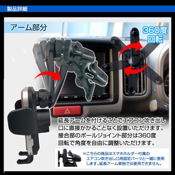 オプション商品 エアコン吹き出し口 延長アーム 固定ホルダー (スマホホルダーオプション品)※スマホホルダー本体は含まれておりません