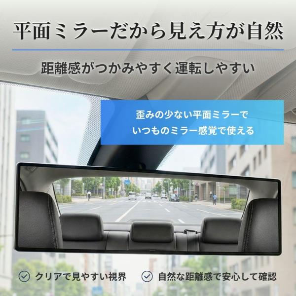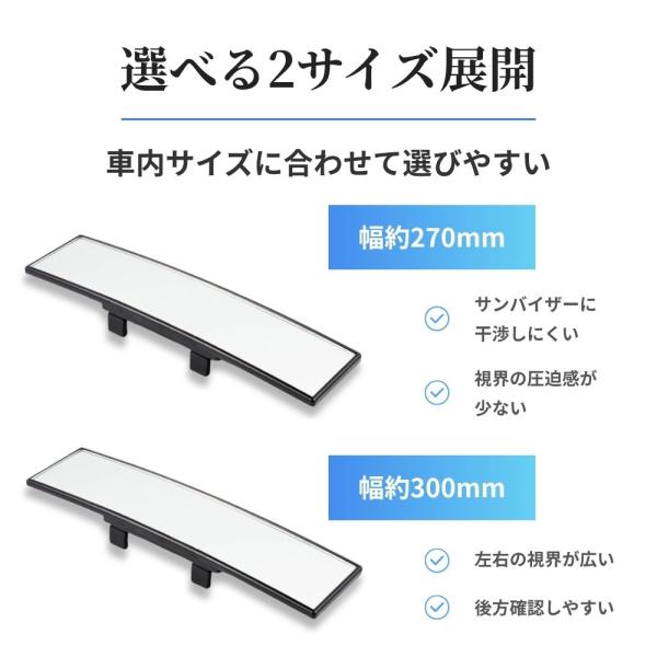 車 ルームミラー ワイド 平面鏡 270mm 300mm バックミラー 視界拡大 歪みなし 取付簡単 汎用 軽自動車 ミニバン SUV 車用 カーミラー 後方確認 安全運転