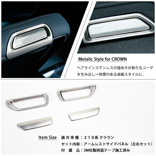 トヨタ クラウン 210系 アームレスト サイドパネル インテリアパネル 左右セット シルバー 内装 装飾 センターコンソール トレイ カバー
