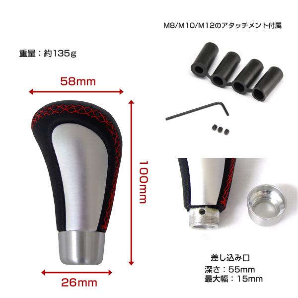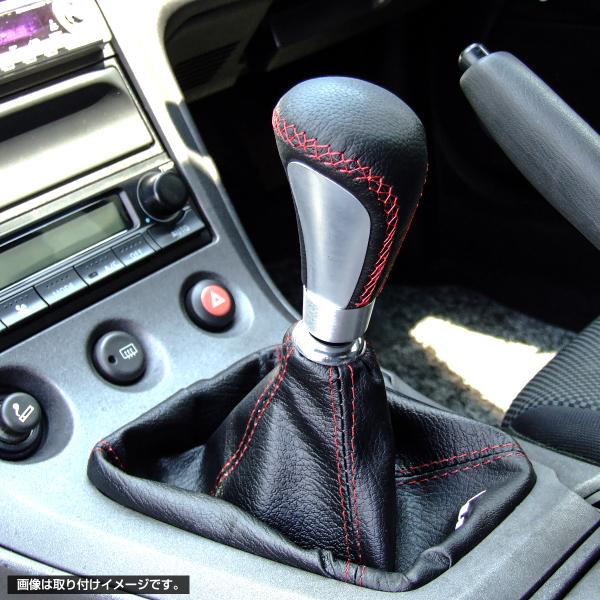 シフトノブ MT/AT 汎用 レザー生地 レッドクロスステッチ アルミプレート ヘアライン レーシング仕様 SZ012