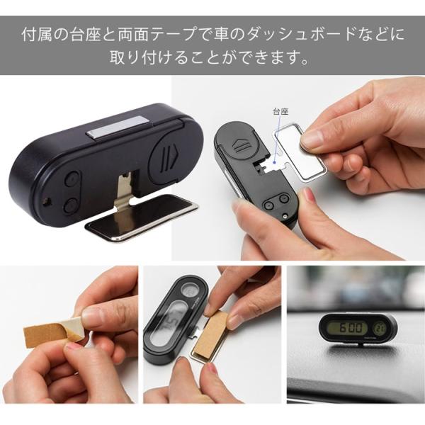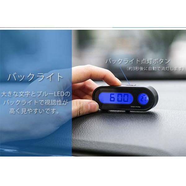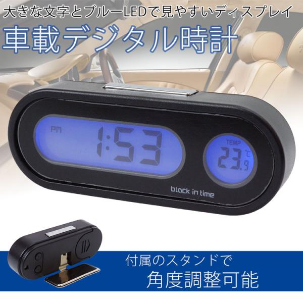 車載 デジタル時計 温度計 スタンド 両面テープ 簡単設置 電池式 ブルーLED バックライト 小型