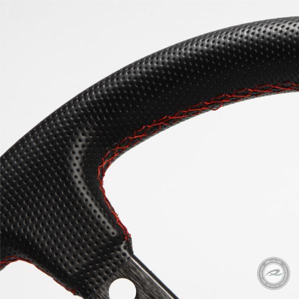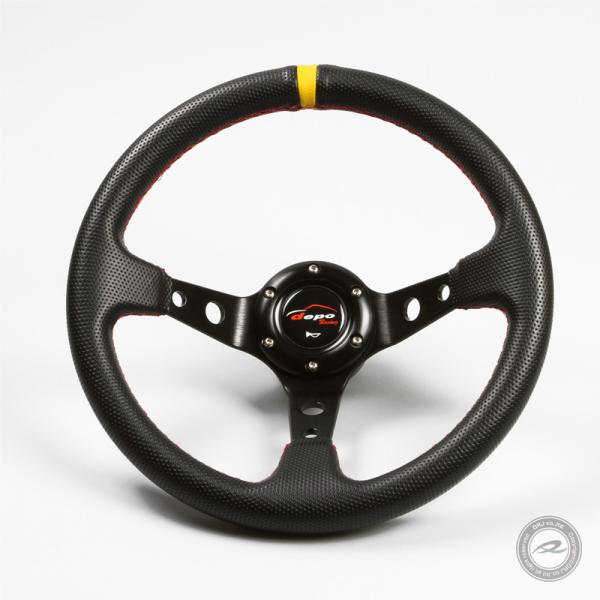 ステアリング 32φ ディープコーン 70mm パンチング加工PVC 赤色クロスステッチ イエロートップD32P