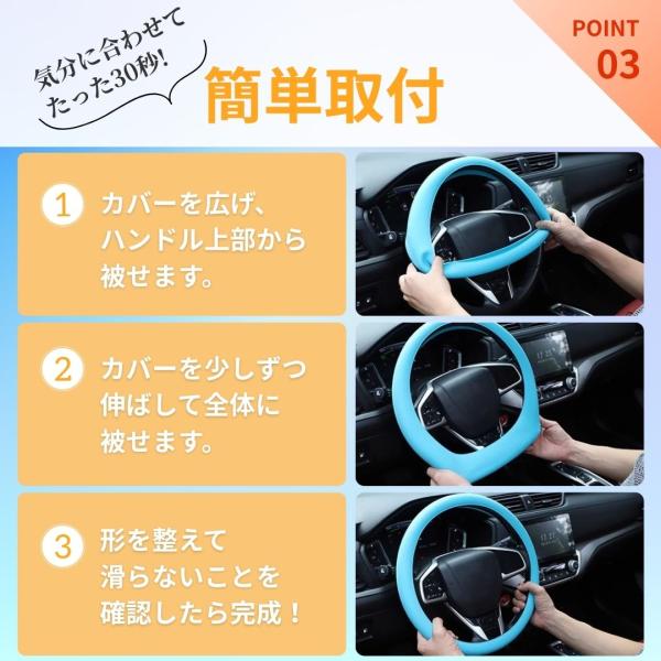 ハンドルカバー 軽自動車 D型対応 簡単装着 ステアリング リペア用 滑り止め 縫わない 撥水加工 S Mサイズ 伸びが良い シリコン製