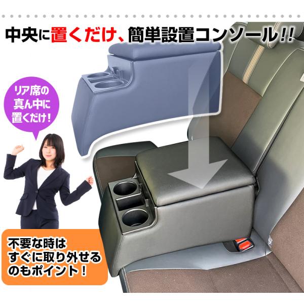 リアシート用コンソールボックス ハイエースバン トヨタ 黒 レザー風 アームレスト 後部座席 収納 肘掛け ドリンクホルダー あすつく対応