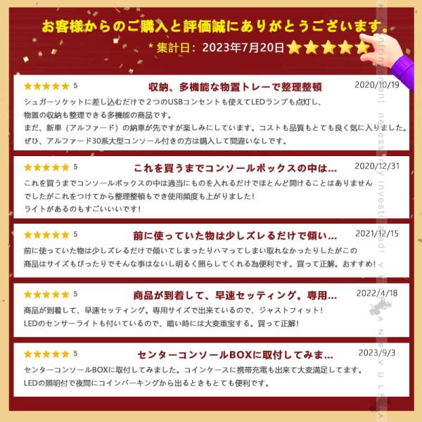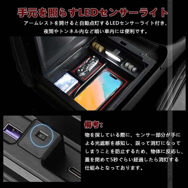 アルファード ヴェルファイア30系 前期 後期 大型 コンソールボックス USB充電ポート LEDセンサーライト搭載 QC3.0+PD 内装 パーツ