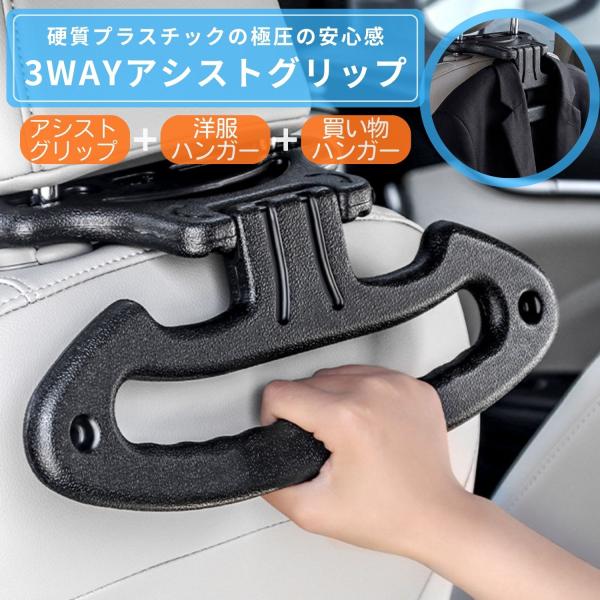 アシストグリップ 後部座席用 補助 ヘッドレスト取付 車内便利グッズ 収納 フック バッグ掛け 車載ハンガー 介護用品 高齢者 子ども 妊婦 工具不要