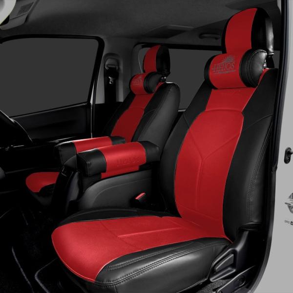 ハイエース 200系 HELIOS ツートン シートカバー ブラックセンターレッド
