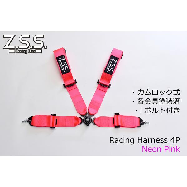 z.s.s. 4点式 レーシングハーネス シートベルト 3インチ ネオン ピンク カムロック式 ZSS Racing Harness アイボルト付