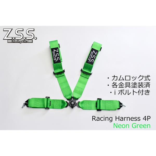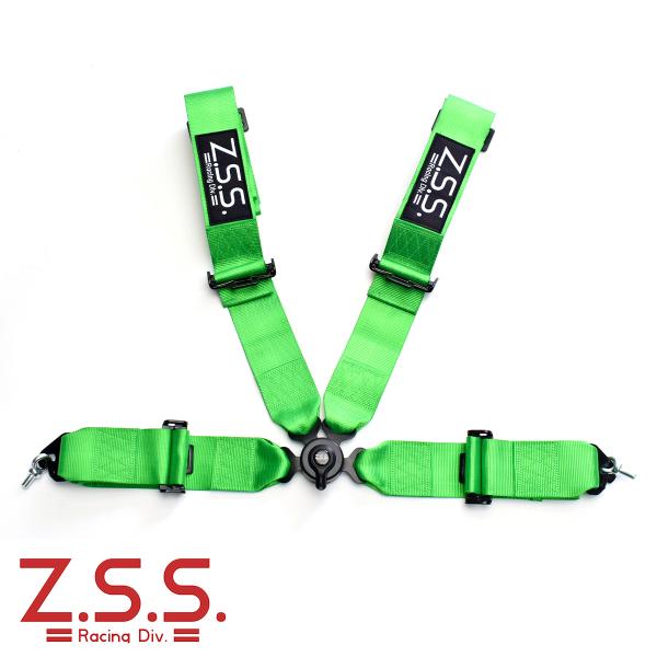 z.s.s. 4点式 レーシングハーネス シートベルト 3インチ ネオン グリーン 緑 カムロック式 ZSS Racing Harness アイボルト付